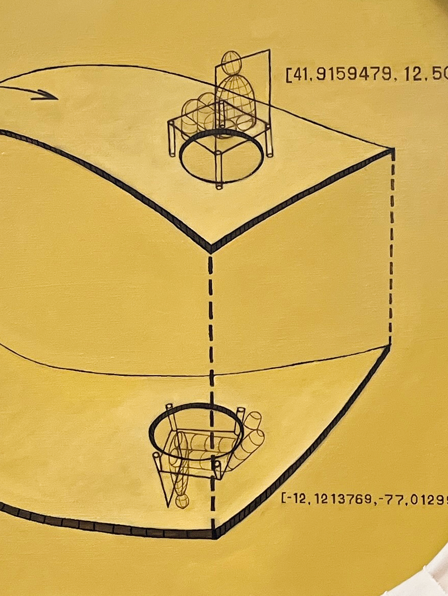 Wormhole I & II is a mirrored painting installation exploring the emotional and temporal dissonance of living parallel lives. Suspended back-to-back and encircled by a Möbius strip, the work reflects on memory, non-linear time, and the impossibility of being fully present in just one reality.